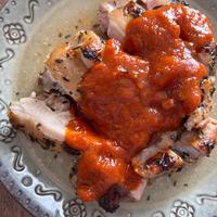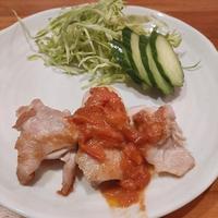 生クリームが無かったのでトマトソースのみにしましたが、皮がパリパリ肉はジューシーで美味しかったです。