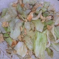 - 5 キャベツを炒めます。軽くしんなりしたところに卵を入れます。