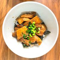 - 7 丼にごはんを盛り、6.を乗せたら、残ったタレをハケで塗り完成です。