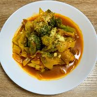エスビーのカレー粉じゃなくハウス食品のカレーパウダーを使ったせいか、スパイシーだけど味にコクがなく、物足りない感じに。和風だしなどを足せば美味しくなるかも?