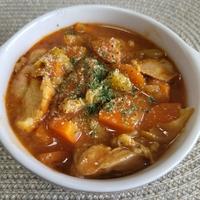 鶏もも肉のジューシーな旨みがスープに溶け出し、トマトの爽やかな酸味とカレーのスパイシーな風味が絶妙にマッチします。キャベツはホロホロと柔らかく、カレー屋さんのスープカレー風の本格的な一品に仕上がります。好みで野菜をアレンジでき、ブロッコリーやピーマン、ミックスビーンズなどを加えても◎。ガーリックオイルを隠し味に使うと、より深い味わいになりますよ。20分程度で完成する手軽さも魅力です。