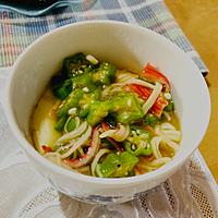 - 5 耐熱ボウルにカニカマをほぐし入れ、2、残りのあんの材料を加えて混ぜ合わせます。