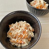 豆腐のなめらかな食感と柿の優しい甘みが見事に調和した秋の和え物です。水切りした豆腐に、ごまの香ばしさが加わることで味わい深い一品に。柿の甘さによって砂糖は調整が必要ですが、すり鉢でなめらかに仕上げるのがポイントです。箸休めにぴったりで、ほうれん草や三つ葉を添えると彩りも香りも豊かになります。お酒のおつまみとしても楽しめる上品な和え物です。