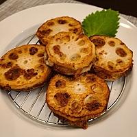 具材に長ネギのみじん切りも加えました。お弁当のおかずにもなります。レンコンが剥がれやすいのが難点かな。