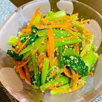 「レンジで簡単 小松菜とにんじんのピリ辛和え」の作り方を簡単で分かりやすいレシピ動画で紹介しています。