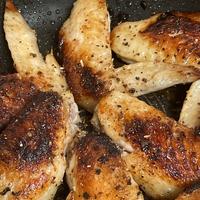 手羽先はいつも、塩コショウガーリックパウダーをかけてコンロで焼いていたのですが、フライパンで今日は作ってみました!味付けが美味しかったぁ♬︎♡