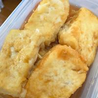揚げた豆腐はタレの中に入れて少し染み込ませた。