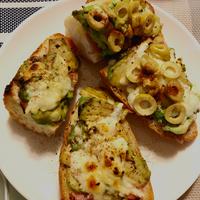生ハムにあまり火が通り過ぎない様に、先にバケットだけ2分程アルミの上に乗せてトースターで焼いてから、全部の具を乗せて2~3分追加で焼きました◎