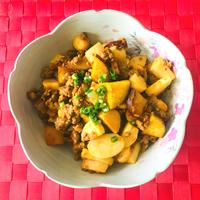 今晩のおかずに里芋とさつまいものピリ辛肉みそ炒めはいかがでしょうか。豚ひき肉の旨味と豆板醤のコクでお箸がすすみます。ごはんのおかずにも、お酒のおつまみにもぴったりです。この機会にぜひ一度お試しください。