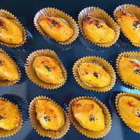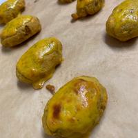 - 5 8等分にして芋型に成形し、アルミカップにのせて天板に並べます。