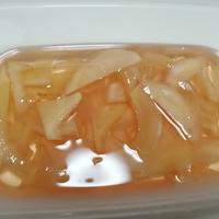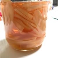 - 4 ザルにとり粗熱がとれたら、水気を切って保存容器に入れます。寿司酢を加えて、4時間置きます。