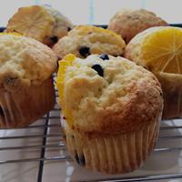 オレンジを丸ごと1個使ったマフィンのご紹介です。生地中にすりおろした皮を混ぜ込むことで、オレンジの香りが効いておいしいですよ。輪切りにしたオレンジをのせて焼き上げますので、見た目もとてもかわいらしいです。