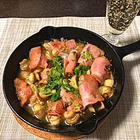 マッシュルームの代わりに椎茸を使用。塩味が少なめだったので、仕上げに塩をかけて頂きました!次は白ワインの代わりに白だしを加えてみようかな。