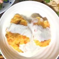 美味しかった〜!少しもっちり感があり鮭フレークの味がほんのりで おやきの様な感じ。ソースは牛乳を豆乳に代えて このおやき?ハンバーグ?にとても合っていて美味しくいただきました。