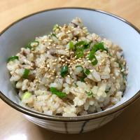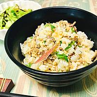 切って混ぜるだけの簡単混ぜご飯ですが思いの外美味しかったです。小ネギの代わりに大葉使用、ミョウガも加えました。薄味なので醤油多めにしています。