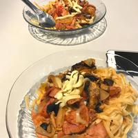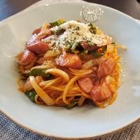 ウインナー→ベーコン、赤ワイン→ミニトマト4個に変えて。甘くないナポリタン、大変美味しかったです!!