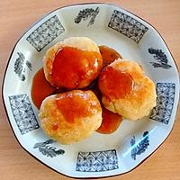 - 5 4をフライパンから取り出し、(B)を入れてとろみがつくまで中火で加熱します。