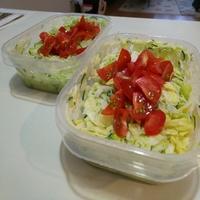 家族向け作り置きサラダ、ミニトマト、新玉、きゅうりを付け足しました♪