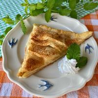 簡単アップルパイのご紹介です。冷凍パイシートを使い、型を使わずに作るので、お手軽です。サクサクのパイ生地と、焼いて甘みが増したりんごの組み合わせは間違いなしのおいしさです。おやつに、ぜひお試しくださいね。