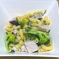 ブロッコリー半分、タコ100、ペンネ100、カットレモン🍋、調味料倍量で作りました