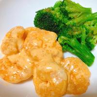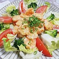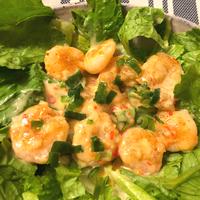 冷凍のエビを使いました。海水程度の塩水で解凍したので、ぷりぷりになりました。スイートチリソースとマヨネーズの味がばっちりで、美味しかったです。