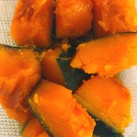 - 1 かぼちゃを食べやすい大きさに切ります。