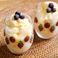 - 3 冷凍庫から取り出して軽く揉み、グラスに入れます。バニラアイスをのせ、中央にホイップクリームとさくらんぼを飾って完成です。