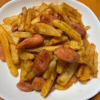 副菜だけど食べるとボリュームある◎ごはんがすすむ!じゃがいも1個、ソーセージ4本、カレー粉と醤油は小さじ1/2ずつで作りました!ソーセージの塩気があるのでちょうどよかった👍じゃがいもは600W5分で簡単に😋