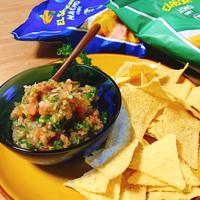 自宅で簡単サルサソースでおつまみはいかがでしょうか。お家パーティの前菜に、ビールのおつまみに、チキンソテーにかけても美味しいですよ。トマトの美味しい季節にパッと切ってあえるだけです。是非お試しください。