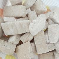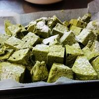 - 6 冷蔵庫で30分程冷やし、固まったらコーンスターチを両面にまぶし、包丁で切って完成です。