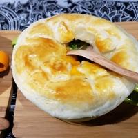 中心が落ちてしまい、膨らまず失敗…。星が重かったのかな?でも、スプーンでサクッとして美味しかったです。子供は見た目すごーい!と喜んでくれましたが、食べづらい、中のシチューは美味しいと言ってました。