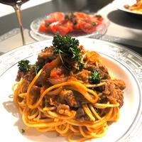 牛こま肉を使った食べ応えのあるトマトソースパスタのご紹介です。牛こま肉を使うことで、牛肉の旨味がトマトソースに凝縮され、おいしいパスタになりますよ。お好みでにんじんやセロリなどの香味野菜を入れてもおいしくなります。ぜひお試しください。