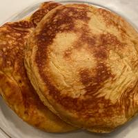 - 4 熱したフライパンに無塩バターを溶かし、3を半量入れ中火で焼きます。表面がフツフツしてきたら裏返し、焼き色がつくまで中火で焼きます。