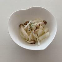 具材を電子レンジで加熱して、マリネ液に浸すだけの簡単レシピです。酸味のあるマリネなので、夜ごはんの箸休めにも、お酒のおつまみにもピッタリです。きのこは他にもしいたけや舞茸など、余っているものを使ってもおいしく作れます。