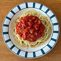 - 5 お皿にスパゲティを盛り、上から3をかけたら仕上げにドライパセリをふり出来上がりです。