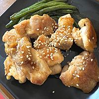 定番照り焼きチキン、実家の家庭菜園インゲン入れて黒胡麻代用で作りました!彩り良くお弁当用にもいいですね。😃✨