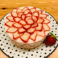 - 準備 クッキングシートに直径14cmの円と直径12cmの円を描いておきます。 オーブンは180℃に予熱しておきます。 いちごムース用のいちごはヘタを切り取っておきます。 飾り用のいちごは半分に切っておきます。