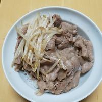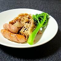 豚しゃぶ用100と余っていたウインナー2本、調味料は半量。色が薄いけど味がしっかり付いて美味しいと好評✏️