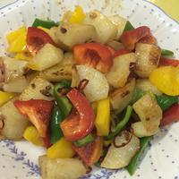 - 4 ピーマン、パプリカを入れてサッと炒め合わせ塩胡椒で味を整えて完成です。