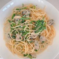 生クリームは牛乳で代用。トロミをつけるため、小麦粉大さじ2分の1を、弱火で粉っぽくなくなるまで炒めてから、牛乳を少量ずつ加えました。仕上げに塩胡椒。また同じ作り方でリピしたい!