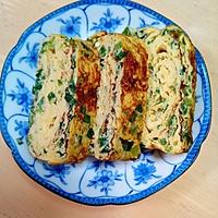 ニラたっぷりの玉子焼きをご紹介します。顆粒和風だしの素を使って簡単に、だし巻き卵風に仕上げました。刻んだニラをたっぷり混ぜ込んだので、緑が映える一品です。ぜひ作ってみてくださいね。