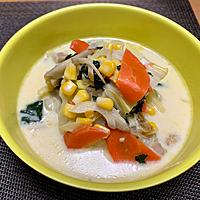 人参とえんどう豆を入れました。牛乳の代わりに豆乳を使いました🙋優しい味でとても美味しかったです!