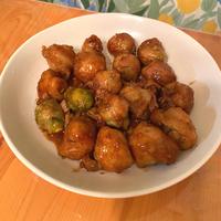 こってりタレとさっぱり芽キャベツで丁度いい感じ。出来立ての芽キャベツがホクホクした食感がたまらん❗