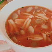 - 4 別の鍋に水、カットトマト缶、顆粒和風だしを入れて強火で熱します。沸騰したら1、パンチェッタを入れ、蓋をして5分ほど煮ます。