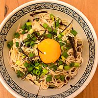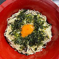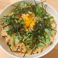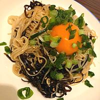 めんつゆを足しました。たべれぽにも書いてあるように、麺がくっついて食べにくかったです。卵黄と胡麻油と塩昆布の旨味がマッチして美味しかったです。