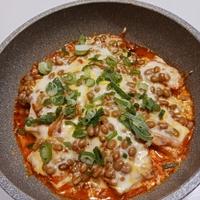 「スキレットで 厚揚げのキムチーズ納豆」の作り方を簡単で分かりやすいレシピ動画で紹介しています。