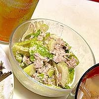 - 2 ボウルに1、ツナ油漬け、(A)を入れて混ぜ合わせます。