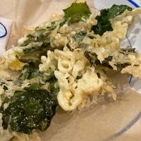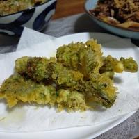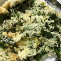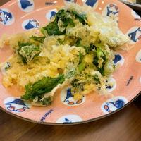 簡単に、天ぷら粉で作りました。油の温度が高かったのか、ちょっと色が付き、菜の花の鮮やかな緑が生えずに残念でしたが、サクサク、美味しかったです。次回は温度に気を付けて再挑戦します。