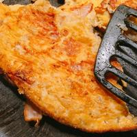 フライパンに流し込んだ材料の表面が乾くまで待つとフライパンの面の方が全体的にコゲコゲになる。