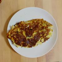 - 4 2のフライパンを一度綺麗に拭き取り、中火に熱して有塩バターを溶かします。3を流し入れ、表面が乾いてきたらひっくり返し、両面こんがりするまで焼きます。